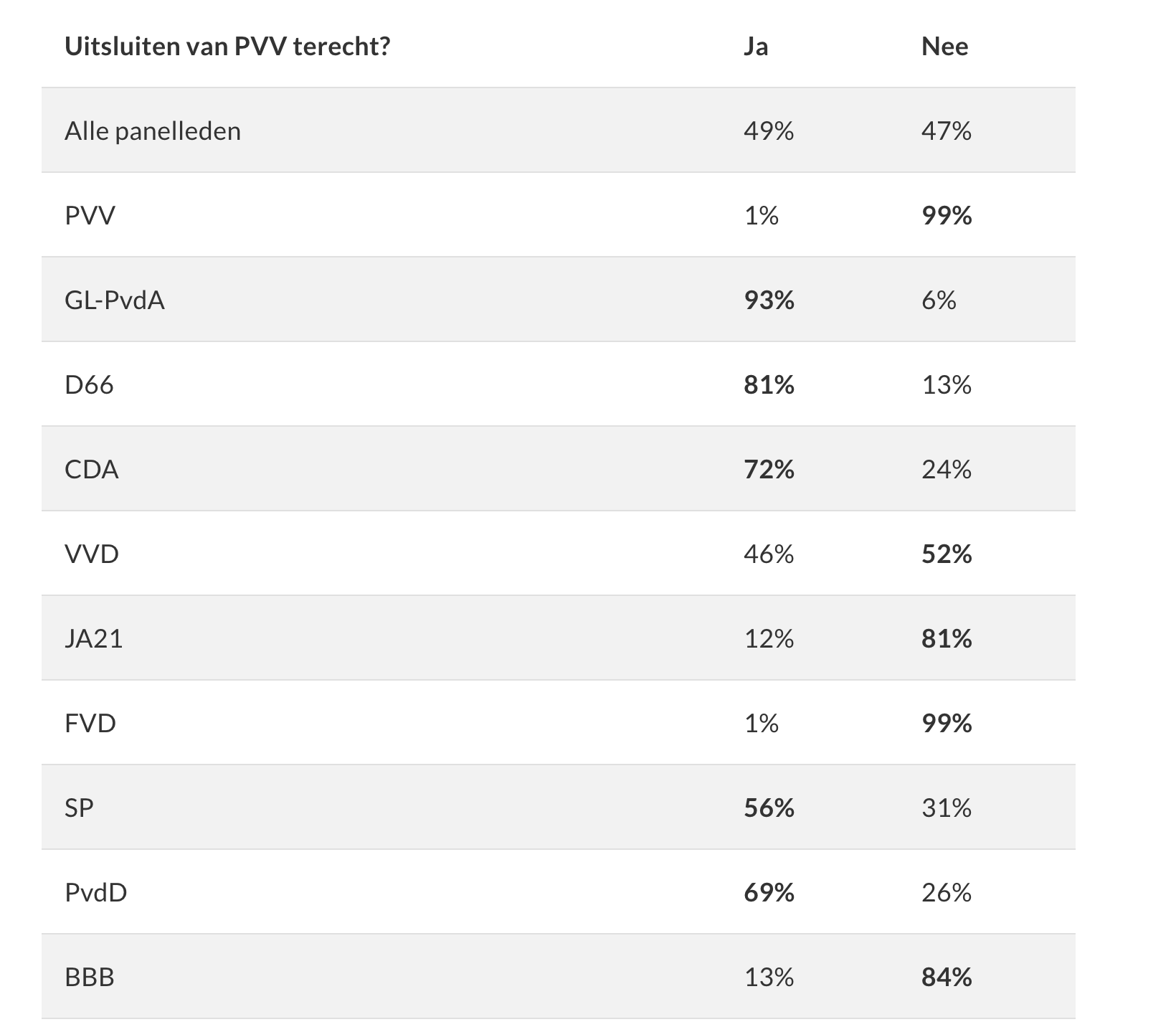 Uitsluiten van PVV verdeelt Nederland: helft van de kiezers noemt het onterecht