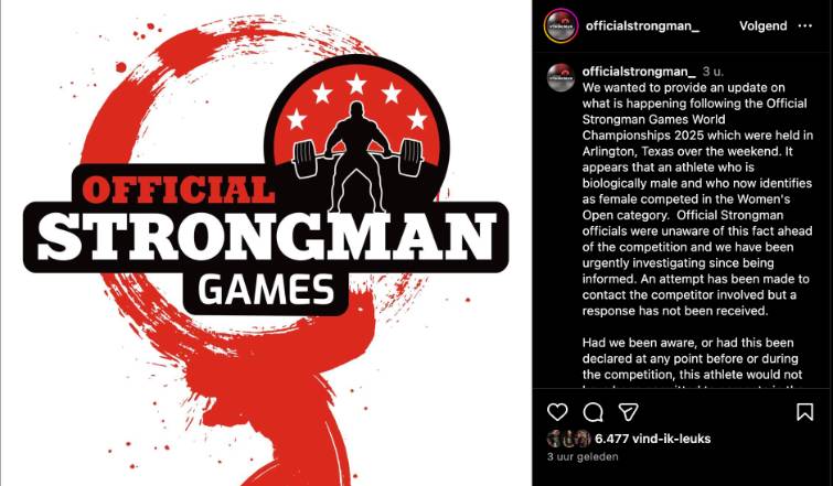Winnaar ‘World’s Strongest Woman’ titel kwijt na onthulling dat hij biologische sekse verzweeg