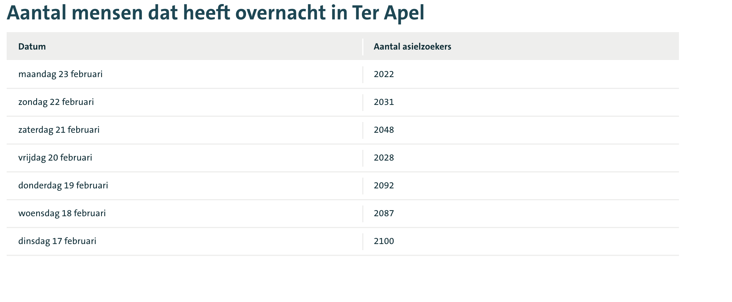 De maximale boete van vijf miljoen euro voor het overvolle aanmeldcentrum in Ter Apel komt snel dichterbij. Het centrum vangt al weken structureel meer dan tweeduizend asielzoekers op. Daarmee overschrijdt het Centraal Orgaan opvang asielzoekers (COA) opnieuw de grens die de rechter heeft gesteld.