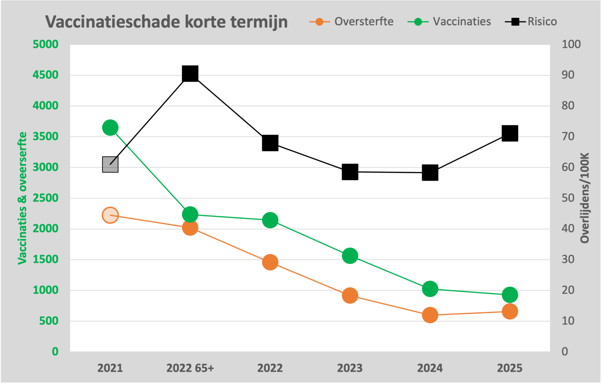 De analyse richt zich vooral op de korte termijn. Volgens Steigstra is daar het verband het meest zichtbaar. In door hem samengestelde grafieken lopen vaccinatiecampagnes en pieken in oversterfte opvallend gelijk op. Vooral bij de grootste zes vaccinatiegolven is dat zichtbaar. Tegelijk erkent Steigstra dat de methode niet exact is. “Het is geen nauwkeurige methode, maar we zijn op zoek naar een indicatie wat die extra sterfte zou kunnen zijn.”