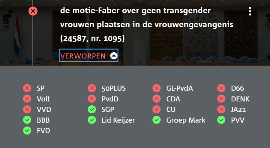Motie Faber om geen transgendervrouwen in de vrouwengevangenis te plaatsen verworpen door Kamermeerderheid